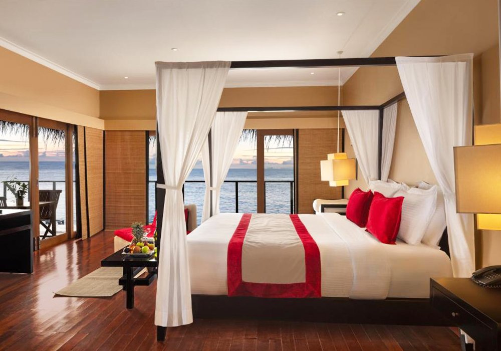 - Overwater with thatched roofs and wooden exteriors, these villas are perfect for a romantic escape. Enjoy sunrise views from your private deck with direct water access. Daily snorkeling trips are complimentary and stays over 5 nights include free excursions. Enjoy dedicated butler service for an elevated experience.
