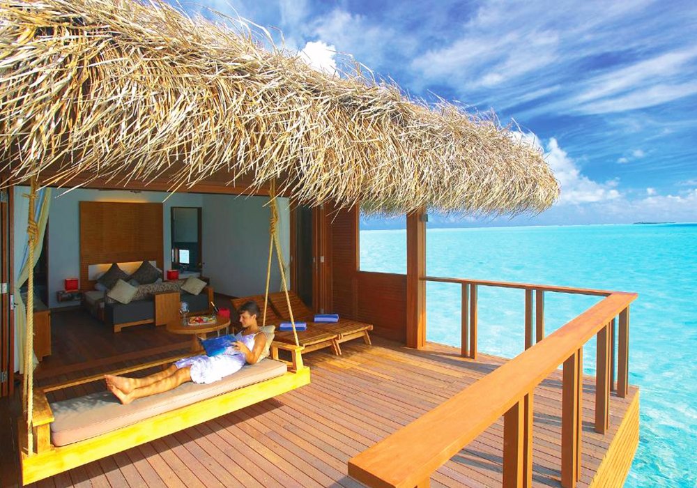- Perched above the crystal-clear lagoon, these Water Villas offer breathtaking sunrise or sunset views. The bedroom features floor-to-ceiling windows that fully open to reveal uninterrupted ocean vistas. With direct lagoon access from your private sundeck, these villas are perfect for those seeking a tranquil escape.