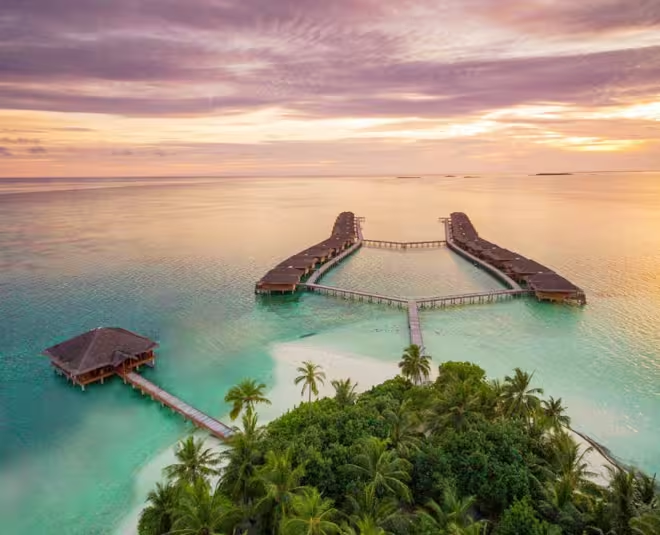 - Perched above the crystal-clear lagoon, these Water Villas offer breathtaking sunrise or sunset views. The bedroom features floor-to-ceiling windows that fully open to reveal uninterrupted ocean vistas. With direct lagoon access from your private sundeck, these villas are perfect for those seeking a tranquil escape.